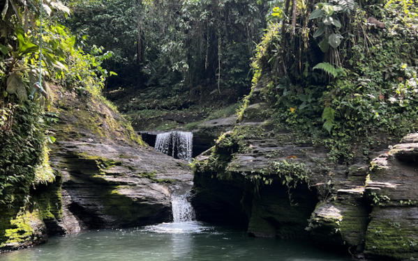 and dark due to the shade of tall vegetation that creates a roof over the top