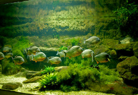 fishes. The Red-bellied piranha lives here, an omnivorous forager larger than any other species of piranhas. Some of the tropical groups of fish